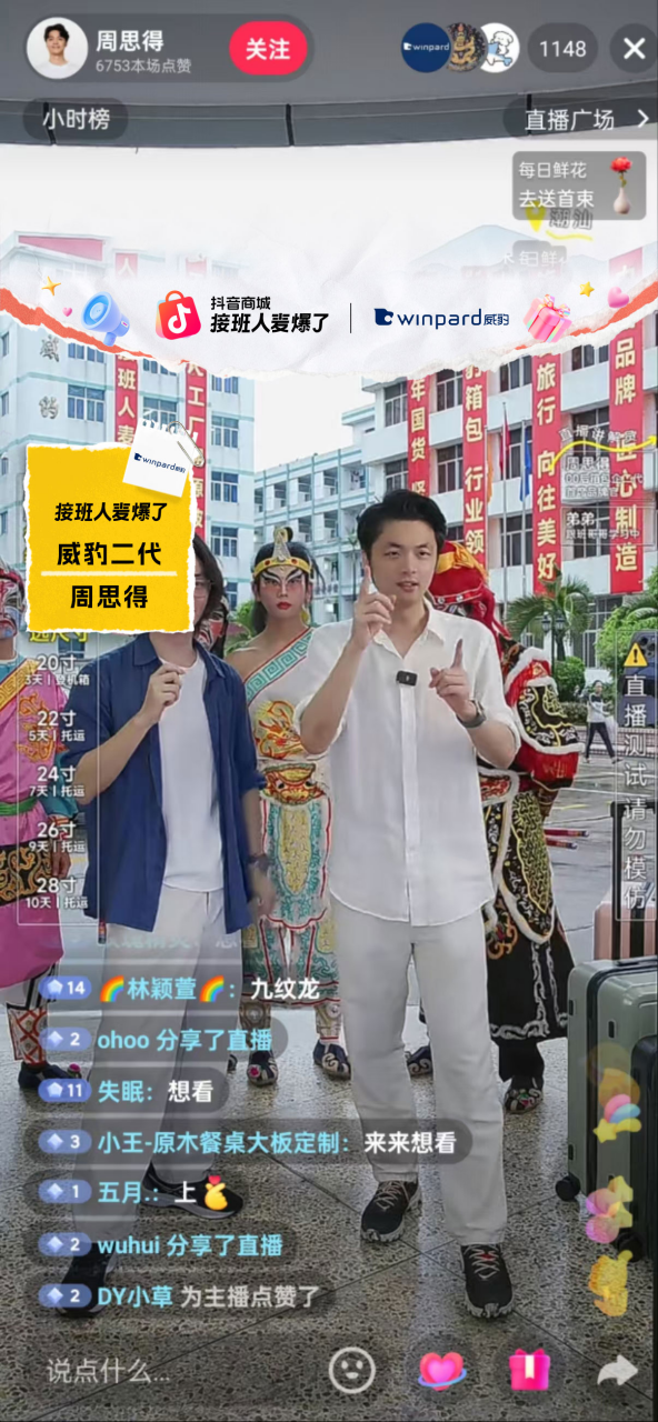 箱包品牌威豹的接班人周思得在工厂实景开播,家族成员齐上阵,通过融入潮汕非遗文化带来一场“箱包版”潮汕文化溯源盛宴;林清轩二代孙瑞泽在直播间内带领观众展开一场“品牌产品溯源”之旅;博牌二代周贤程空降海外展会直播间,在展会场景下带来限定破价福利。
