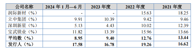 低研发费用率直接说明东盛金材在产品研发、技术创新、工艺改进等方面的资金投入较少。在专利数量方面,截至2024年年末,东盛金材拥有129项专利,其中发明专利11项。同一报告期内,立中集团合计拥有964项专利,其中发明专利170项;深圳新星拥有国内外发明专利73项、实用新型专利27项;润际新材母公司获得的授权发明专利共23项。