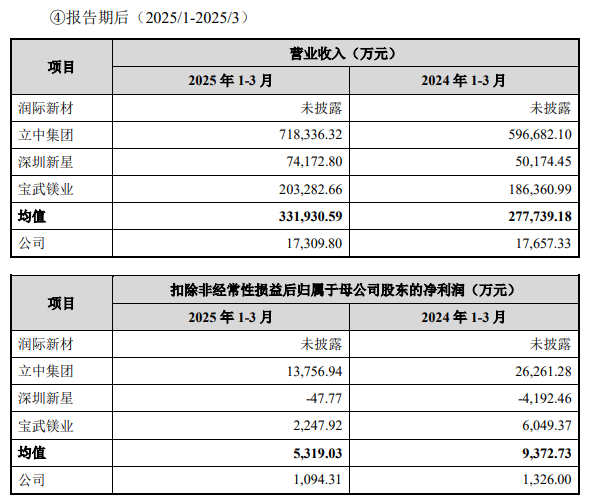 然而,打脸的是,在同一市场环境下,东盛金材2025年业绩更是远不及行业平均水平。根据问询函回复内容,2025年一季度,东盛金材营业收入为1.73亿元,扣非净利润仅有0.11亿元;同一时期的行业平均值分别为33.19亿元、0.53亿元。