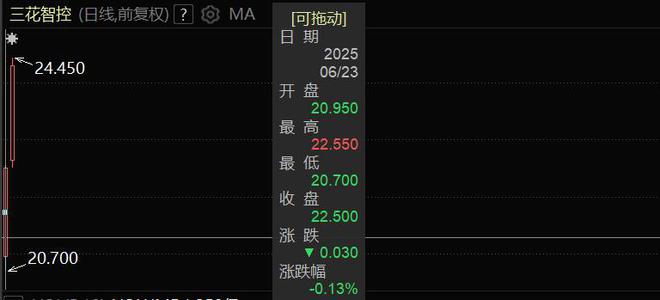 6月23日,三花智控在港交所上市,但开盘即破发,上市首日股价跌破22.53港元/股的发行价,报20.95港元/股,跌幅超7%。