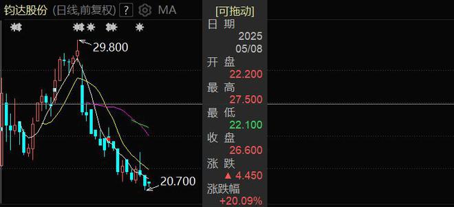 5月8日,钧达股份在港交所上市,开盘报22.2港元/股。截至收盘,该股报26.6港元/股,涨幅20.09%。