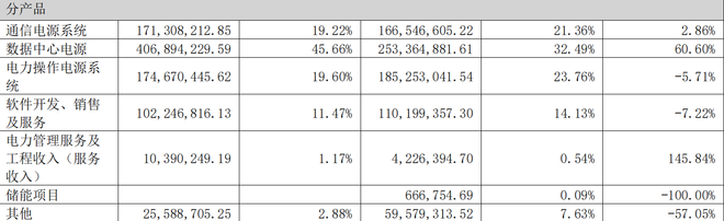 数据显示,公司数据中心电源业务实现营业收入4.07亿元,同比增长60.6%,占总营收比达45.66%,显著高于其他业务营收增长速度。