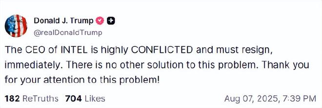 剧本的开场,是一句充满火药味的总统指令,特朗普一如既往地以看似充满随机性的方式,在社交媒体上对英特尔发难。