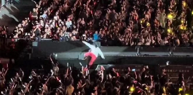 2025年7月13日,陈奕迅北京演唱会上倒退时踩空台阶重重摔倒。
