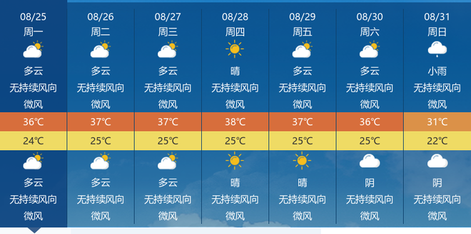 未来三天,随州天气以多云为主,其中8月28日转为晴天,最高气温维持在37℃至38℃之间,最低气温稳定在25℃。建议户外作业单位适当调整工作时间,尽量避开高温时段,同时加强防暑措施,确保工作人员健康安全。