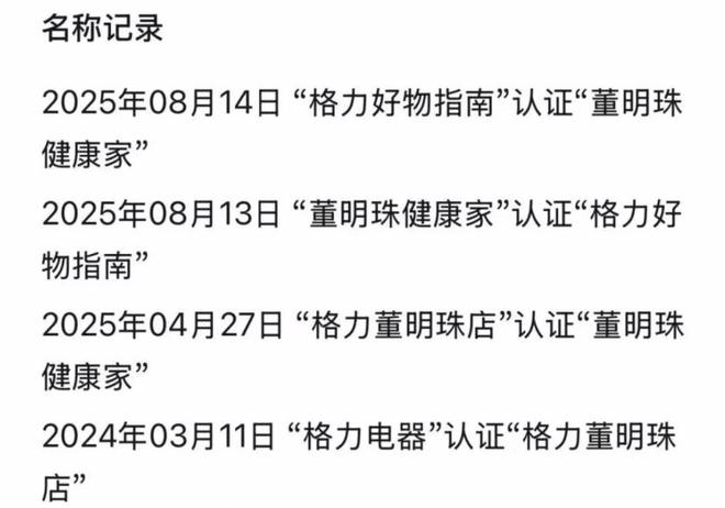 2024年以前格力服务号一直是“格力电器”,最早的名字就叫“格力电器”,2024年3月由格力电器更名为“格力董明珠店”,开始将董明珠打造成IP,与格力进行绑定。此举曾被视为格力电器强化“董明珠个人IP”之举。2025年2月17日,格力宣布“董明珠健康家”作为一个全新战略品牌来推向市场,4月27日格力服务号由“格力董明珠店”改为“董明珠健康家”。
