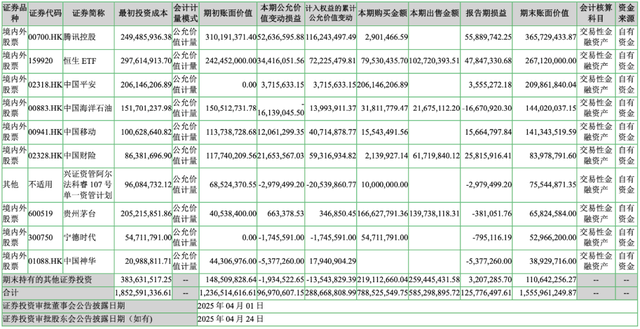 从具体的资产表现来看,腾讯控股的公允价值变动收益高达5263万元,中国平安贡献了372万元,贵州茅台也带来了66万元的增值收益。恒生ETF虽然期末账面值下降到2.67亿元,但通过中间的买卖差价还是赚了一笔。