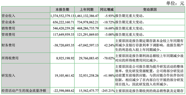 成本这块看似降了一点,但也不算美好。上半年七匹狼关掉了54家直营店、74家加盟店,门店总数比去年明显缩水。与此同时,销售费用却狂涨16.68%,从4.68亿元拉到5.46亿元。这说明,钱花了不少,效果却没拉起来。管理费用算是省了点,但财务费用反而涨了42.24%,因为利息收入缩水了。