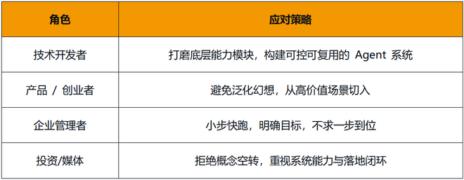 既不能盲目追风,也不能因泡沫成分就全盘否定。不同角色面对AI Agent,应有不同的思考方式和应对策略。