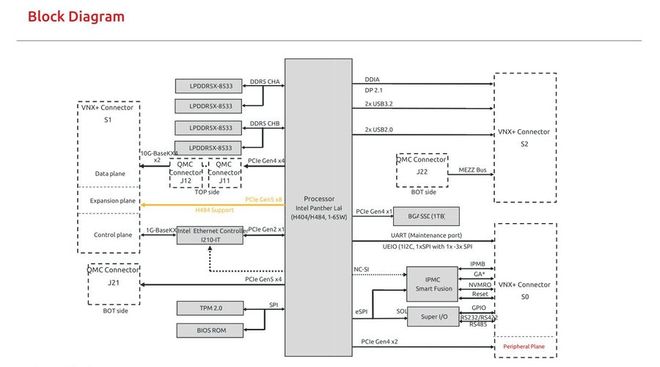 随后,凌华ADLINK的VNX-PL主板也被发现现身官网,搭载Panther Lake H404/H484处理器。凌华VNX-PL主板属于军规加固级单板计算机,采用面向该特定领域的VNX+板型,板载双通道LPDDR5x-8533内存(16GB或32GB容量,正反双贴片)和1TB的BGA形式PCIe 4.0×1固态硬盘。