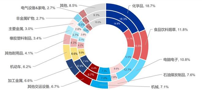 图:美国制造业增加值结构(内圈2008,中圈2020,外圈2023) 资料来源:CEIC,申万宏源