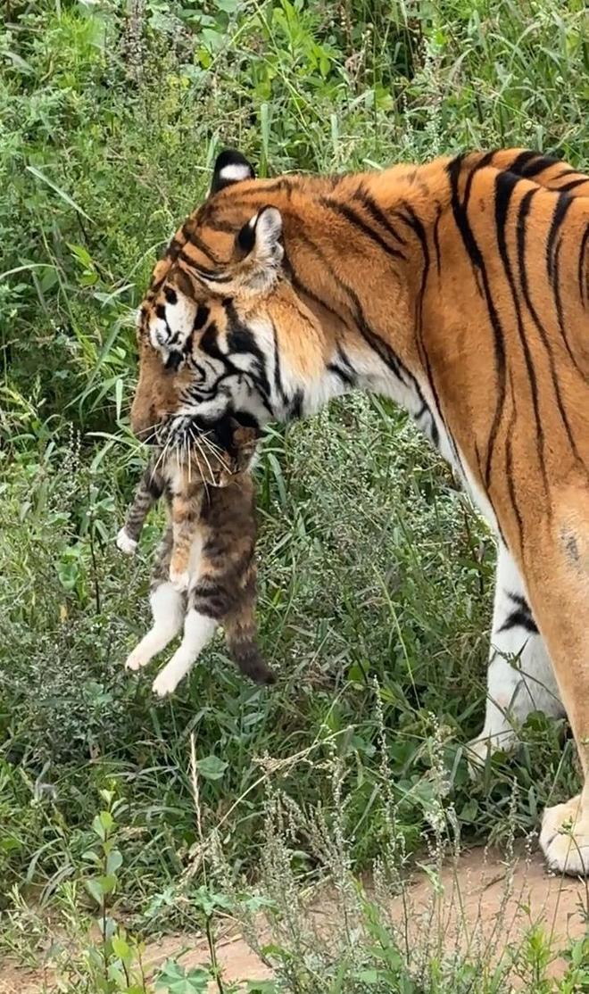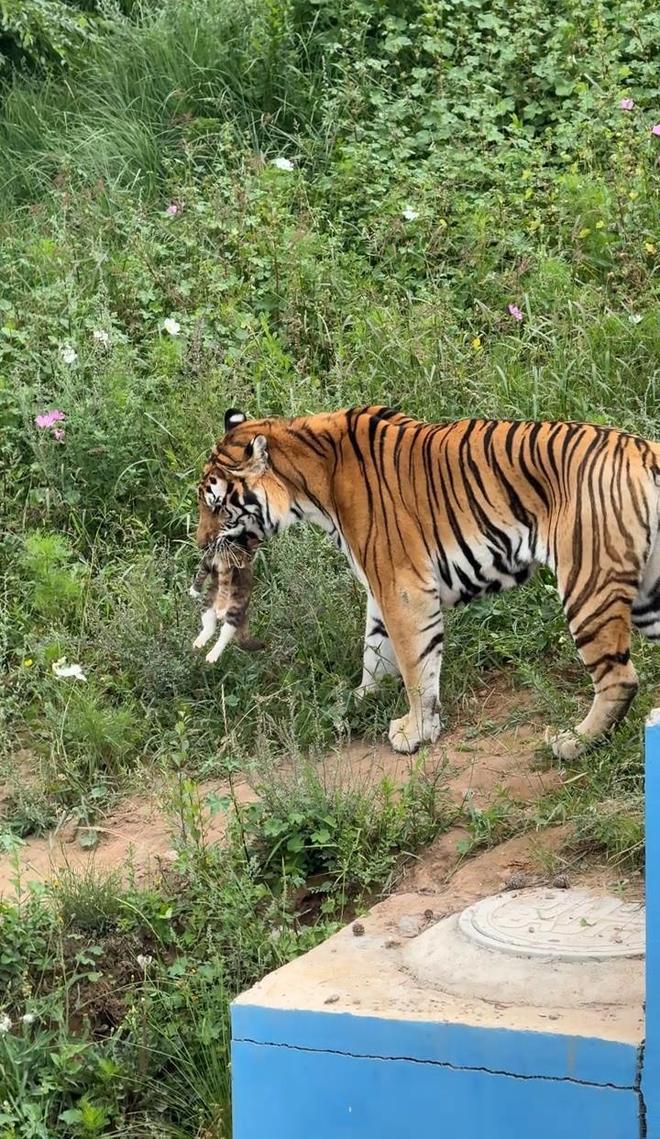 青藏高原野生动物园有老虎“撸猫”,动物园回应:可能是流浪猫,园区禁止宠物入园
