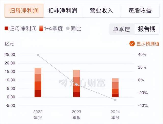业绩方面,江苏国泰的表现也不能令人满意。2021年至2024年,该公司实现营业收入分别为393.9亿元、428.3亿元、371.9亿元、389.6亿元,营收数据并不稳定。并且近三年江苏国泰的净利润持续下滑。2022年至2024年,该公司实现归母净利润分别为17.24亿元、16.04亿元、11.06亿元。