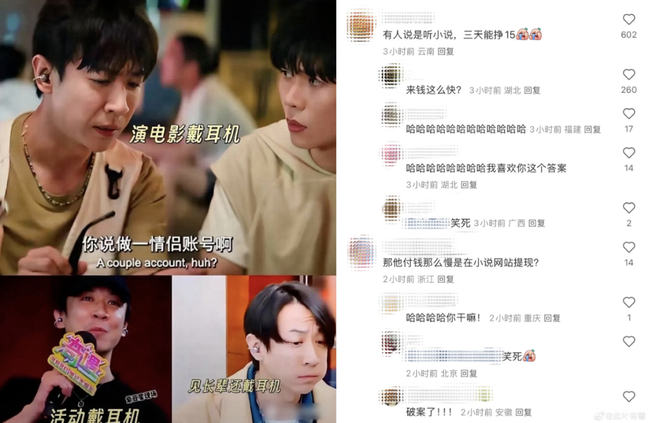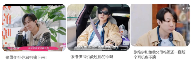 搞笑博主开始模仿张维伊,情感博主开始剖析董璇咋看上的张维伊,普通观众则不禁思考起了另一个问题:他到底为啥一直戴着耳机?
