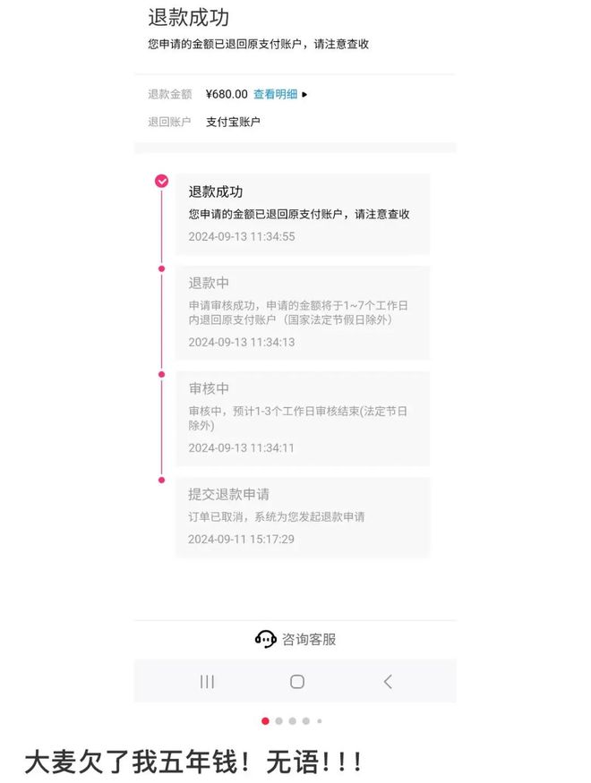 是哪个大怨种大周末不出门、不逛街,一个劲儿地苦翻自己的古早美团订单退款进度,并在微信、支付宝、月付、云支付、网上银行APP之间来回切换,终于体验到会计做账的艰辛,手指快要搓出火就为得知“退款的钱到底有没有到账”。