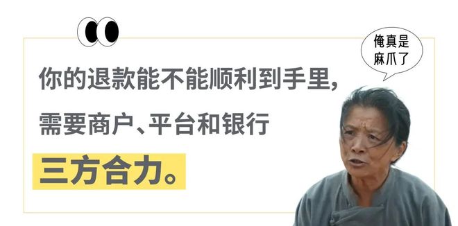 也就是说,在这个过程中,有商户、平台和银行三方参与,无论是美团还是抖音淘宝,本质都是退款的中介,你的退款能不能顺利到手里,需要三方合力。