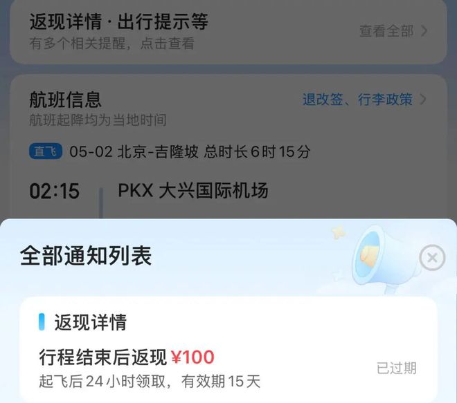 本质是年轻人想省点钱,与之类似的还有机票返现。如今越来越多OTA平台推出返现机票,用“返现后便宜”的价格诱惑你下单,往往一单可以返现上百元,但需要你坐完飞机24小时后、15天内申请返现。OTA也开始帮你强制存款,前提是你对几个月前定的每张机票详情都记忆犹新,即使面对隐藏很深的返现界面也拥有火眼金睛,不然面对“15天后过期不候”的规则只能怪自己脑子不够用,“既然我能接受平台扣留这么久我的钱,那以后能不能我先坐飞机再付钱?”