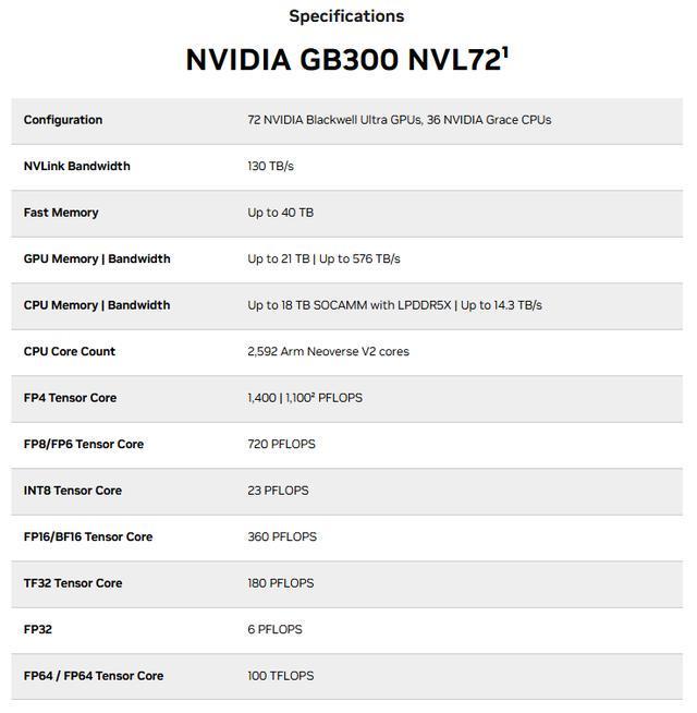 对于客户而言,这可以加快词元生成速度并降低延迟,同时更高效地扩展企业 AI 工作负载。CoreWeave 重点介绍了 NVIDIA GB300 NVL72 机架式系统的卓越规格和功能,该系统提供高达 37 TB 的内存容量(GB300 NVL72 最高支持 40 TB),可用于运行大型复杂的 AI 模型,以及可提供 130 TB/s 内存带宽的超快互连。