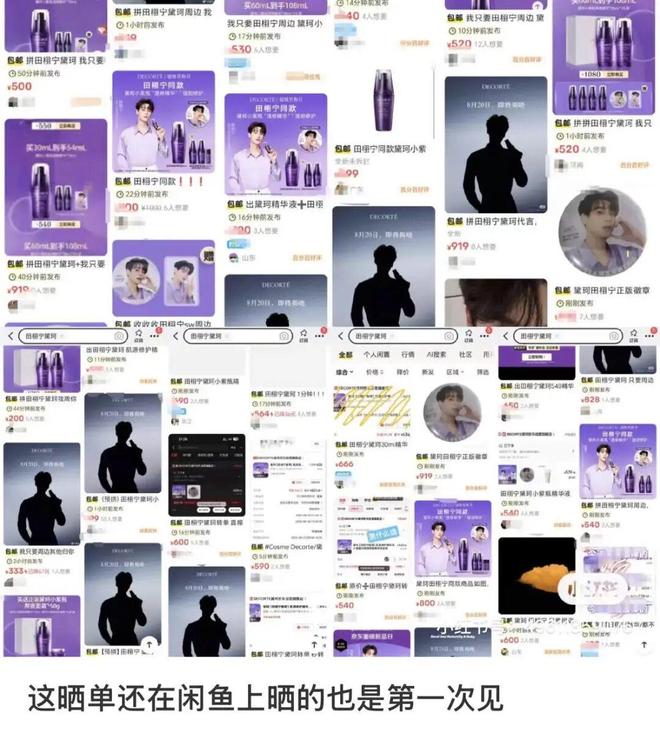 往常粉丝转卖代言产品多是在收到货之后,但这一次,闲鱼当晚就出现了大量田栩宁同款二手链接。以至于有网友跑去问客服:你们家旗舰店最近搬到闲鱼了吗?