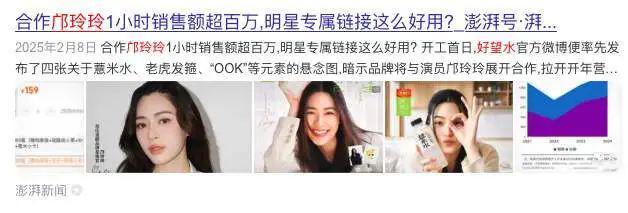 比如此前被骂上热搜的泰国明星邝玲玲,今年年初被饮品品牌好望水看到,“就签了一个非常短的单链合作,做好望水美好星推官,主推薏米水产品,业内估计只花了10万左右,但卖得非常好。没多久好望水就给了一个也很短的薏米水美好大使,又卖得很好。商业价值直接翻倍,拿到了珀莱雅的品牌灵感大使。”李伟透露。