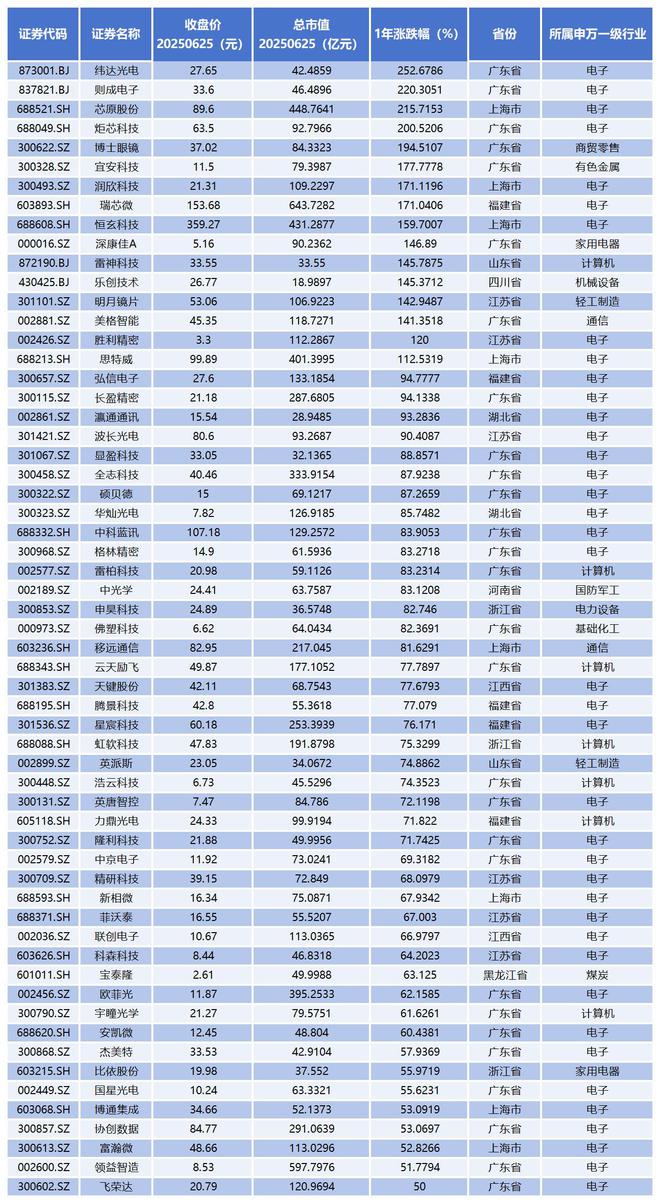 其中,纬达光电、则成电子、芯原股份、炬芯科技涨幅均超过200%。
