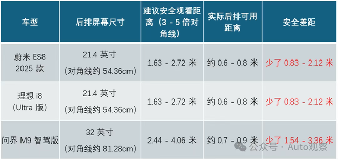 而智能大屏除了对视力不好——虽然车已经越来越大,但要达到屏幕建议观看距离还是有难度——也存在碰撞安全风险。后排大屏在车辆碰撞时可能移位或破碎,成为二次伤害源。此外,如果关键信息(如车速、档位、导航)、重要功能(换挡、空调)都集成于大屏,一旦出现卡顿、死机或黑屏,同样影响驾驶安全。