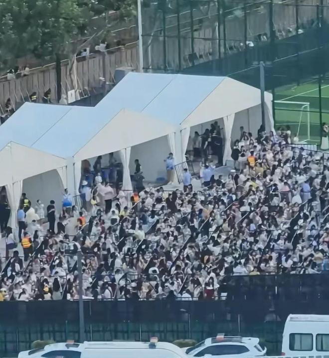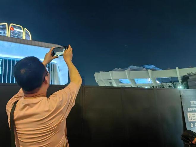 一名等待的家长应女儿要求拍下演唱会场外视角