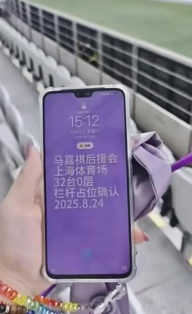 小芙是一名马嘉祺唯粉,她向我展示了后援团最早在下午3点3分就用紫色扎带占据16台2层栏杆的确认视频,视频中捏着手机和冰凉贴跑过5道安检关卡的女孩边播报战况边大口喘息,这种占位应援已经在各家粉圈形成了一套通行的流程,并有高度组织化的分工。