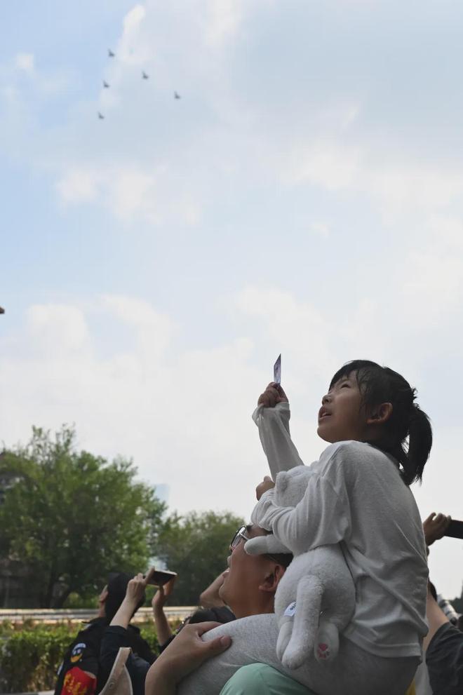 这是市民在卢沟桥观看运输机梯队。新华社记者 宋彦桦 摄