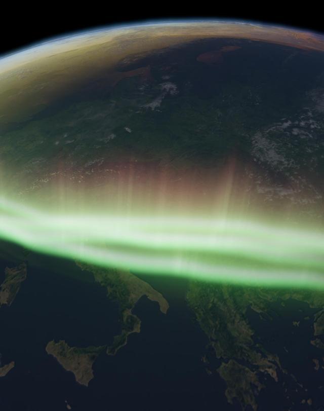 这幅艺术渲染图展现了在拉尚普斯漂移期间,低纬度地区极光可能出现的距离。图片来源:马克西米利安·沙纳(德国波茨坦 GFZ 亥姆霍兹地球科学中心)