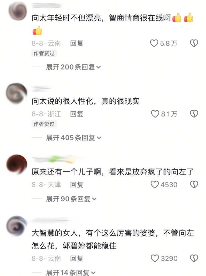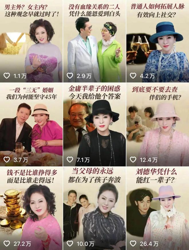 “向太年轻时不但漂亮,智商情商都很在线。”此类评论比比皆是,教你如何过好幸福人生的向太找到了流量秘密,单支金句视频轻轻松松拿下抖音50万播放量。