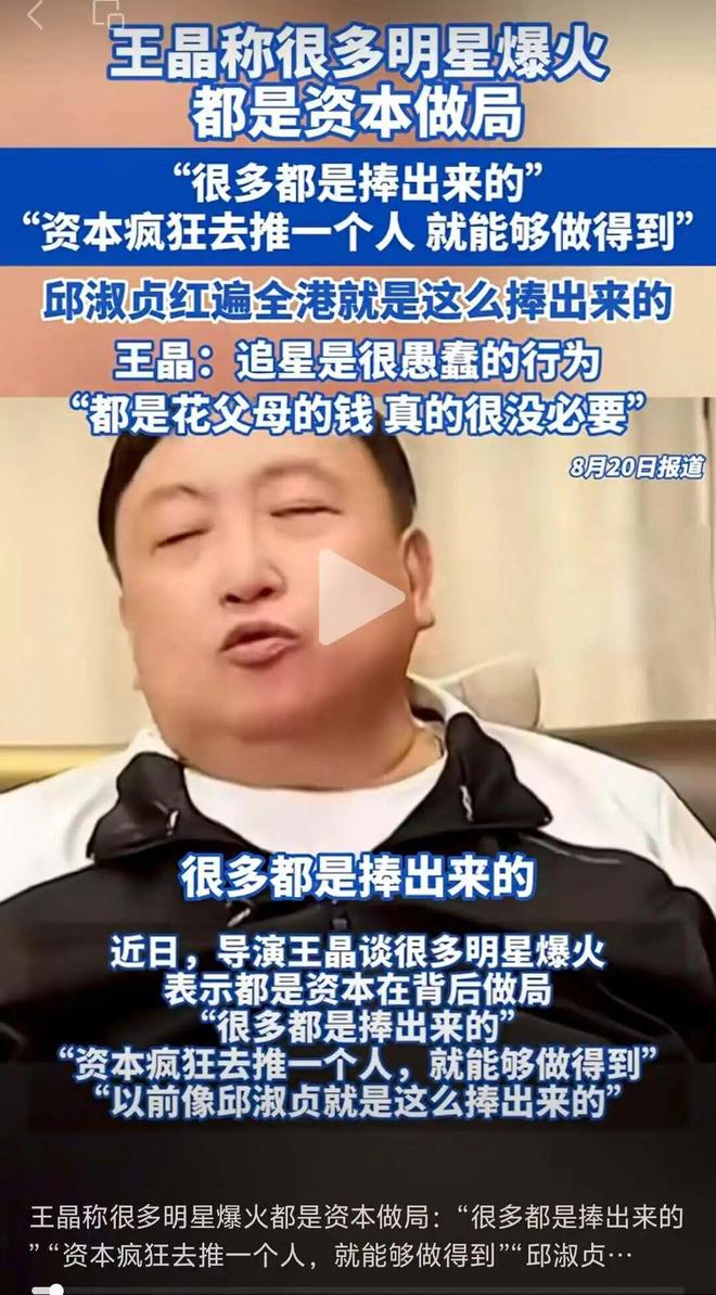 但所谓的“娱乐圈成功案例”,往往背后夹杂着运气和无数资本。导演王晶此前在访谈中直言,很多明星爆火都是资本在背后做局,“很多都是捧出来的,资本疯狂去推一个人,就能够做得到。”比如当年的邱淑贞,香港六家最大报纸头版都登了她的广告,当天就红遍全网。