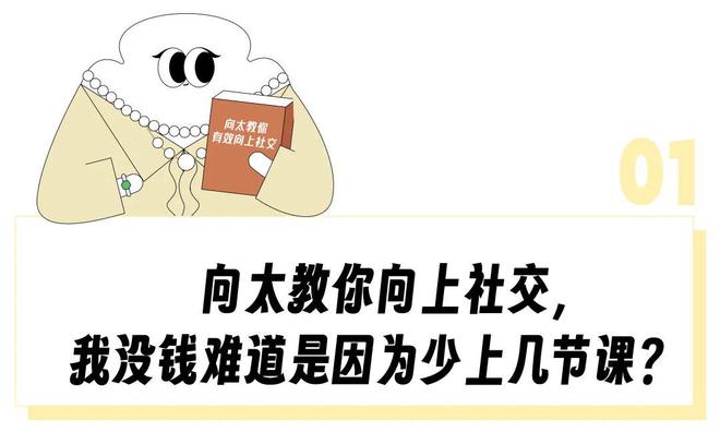 有艺的卖艺,没艺的也要硬卖,比如人生经验,再比如智商情商成功学,反正这些虚无缥缈的经验无法衡量难有标准。就好比向太来教你向上社交,当然向太绝不是第一个。