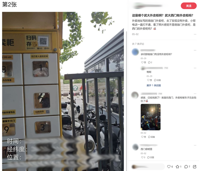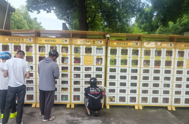 校生活平台随后在西南大学设置了数个外卖取餐点,并陆续配备取餐柜。取餐柜设置在校园内,依然要靠“校生活”的骑手运送进来。