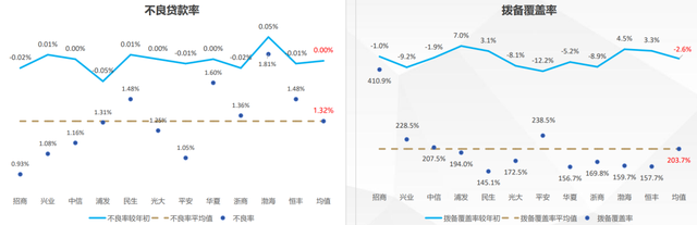 ▲图注:上半年股份行不良率、拨备覆盖率变动情况