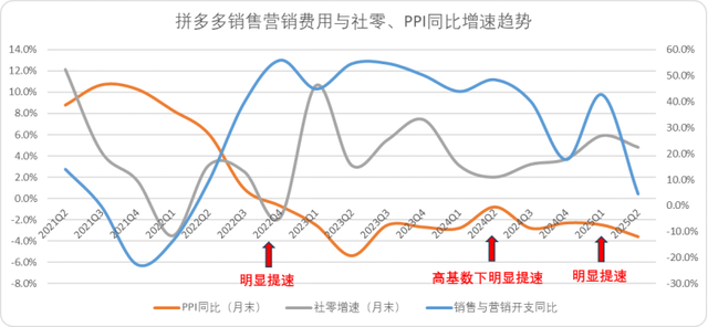 2022年及2024年的两轮补贴提速,均发生于社会消费品零售总额(社零)数据明显下滑的背景下。拼多多依托“百亿补贴”策略,有效熨平了来自用户需求侧的短周期波动。
