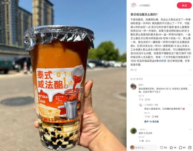 不过也有网友吐槽:“都说用的Kiri酪乳,还以为是什么高端食材,结果上网一搜是含乳饮料,二三十块钱就能买一升,结果一杯中杯的咸法酪就敢卖我25元。”