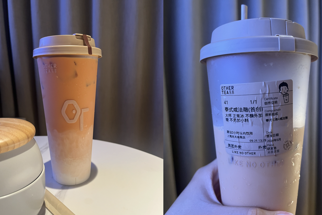 另茶也在宣传中反复提到自己的“首创”属性,甚至在杯子上印上了“创作证明”和“首发日期”——不愧是有江浙沪血统的店,骨子里流淌的都是主理人的血。