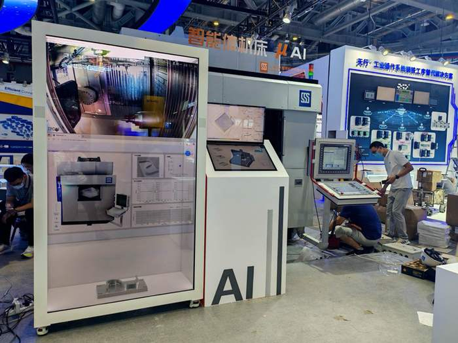 界面新闻记者提前探访现场时发现,多家企业带来全球首发新品。比如上海交大智邦科技首次展出的智能体机床μAI,被称为“带大脑的机床”,能在无人工经验的情况下自主生成加工路径,实际应用可将复杂零件的工艺规划效率提升40%至60%,在航空航天等领域具有重要意义。