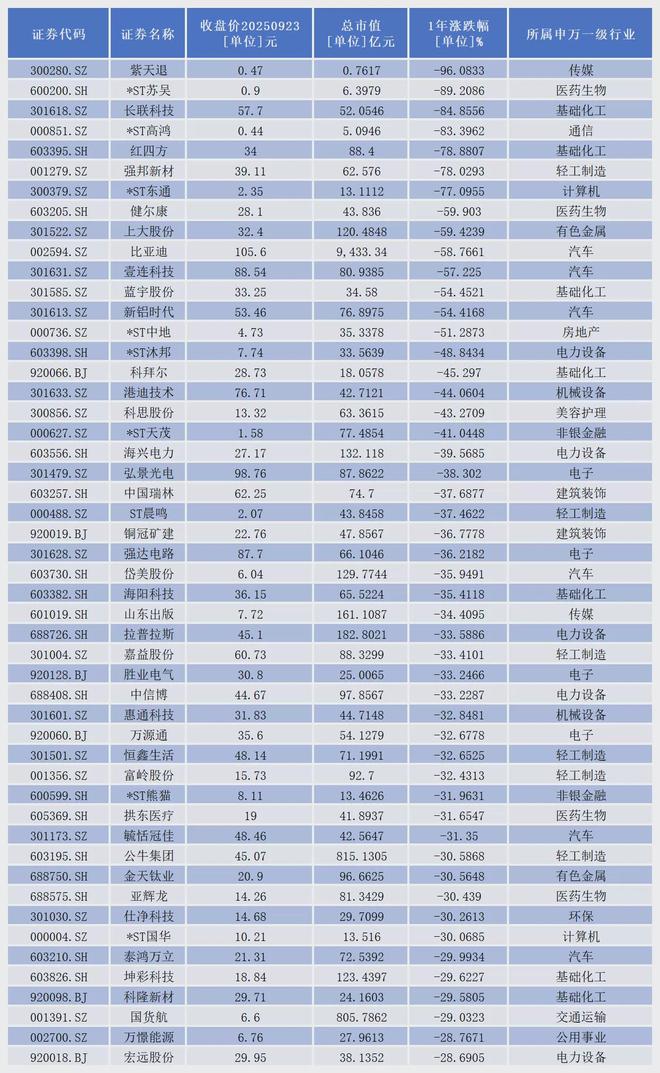 同花顺数据显示,截至9月23日收盘,近一年,A股共有346家上市公司股价出现下跌。
