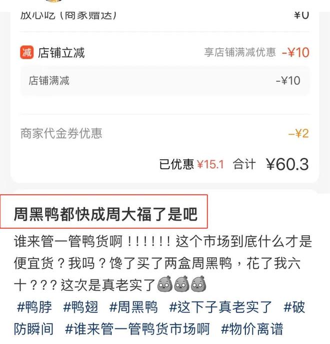 尤其是今年,外卖补贴大战已经打了半年,最近高德下场又要开始团购大战,价格已经越卷越低,偏偏鸭脖依旧很贵。