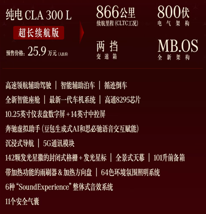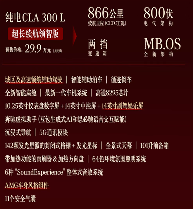 奔驰纯电CLA,89度电池续航超866km,电耗控制卓越,售价亲民从25.9万起!