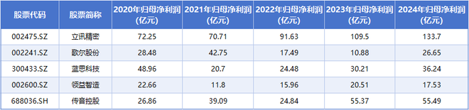 2021年,立讯精密已发展成为营收超1500亿元,苹果业务占比达七成的全球消费电子巨头。不过,2021年消费电子行业进入下行周期,行业增速放缓,相关公司的业绩都受到一定影响,而立讯精密归母净利润同比小幅下降2.12%,业绩仍展现出不错的韧性。