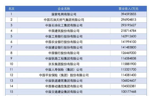 中国企业500强榜单,国家电网与京东的竞争格局分析