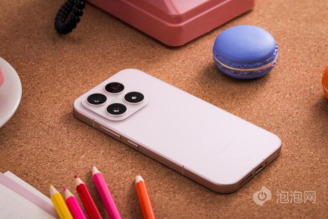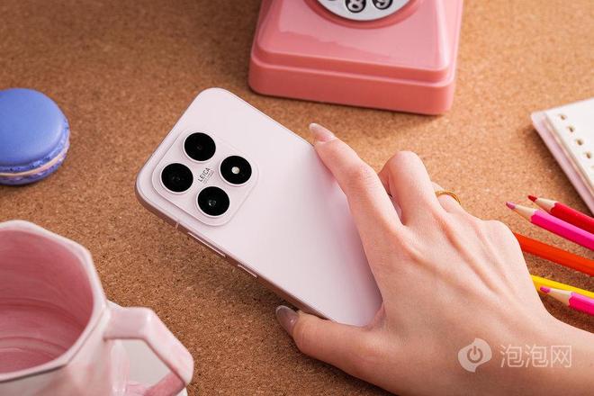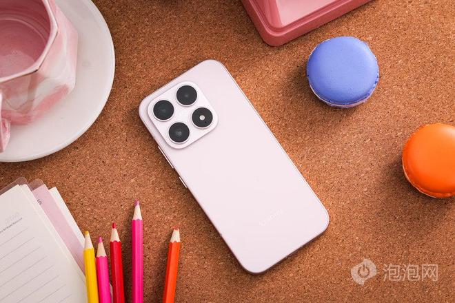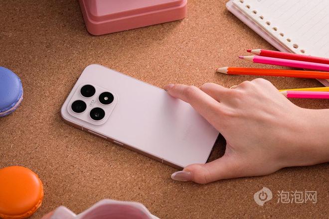 我手中的这台是“雪山粉”配色,灵感来源于雪山之巅。淡雅的粉色在光线下呈现出微妙的变化,既有雪峰般的坚韧,又不失少女般的柔美,另外还有黑色、白色、冰融蓝配色可选择。所有配色背部都采用玻璃冷雕火山口工艺,叠加喷砂AG工艺,带来了细腻的磨砂质感,告别了指纹收集器的尴尬。