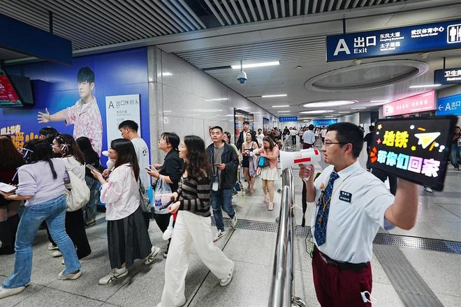 此时,从出入口到站厅、站台,“进站模式”加速,备用列车一趟接着一趟抵站接歌迷返程。