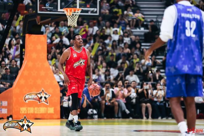 “2025聚星名人赛”分为“聚星队”和“名人队”。聚星队囊括了雷·阿伦、保罗·皮尔斯、王鹤棣、阎鹤祥、吴勇豪等人,昔日“凯尔特人三巨头”中两位传奇在成都再次合体,让人兴奋不已;“名人队”则由理查德·汉密尔顿、尼克·杨、吴尊、黄曦彦、丁彦雨航、赵爽等人组成。四川本土演员王鹤棣在这晚堪称人气爆棚,他在比赛中的每一次触球都能在看台上掀起巨大的欢呼声。在比赛中,王鹤棣不但接连得分,而且能攻能守,有一次单防“NBA单打王”尼克·杨的场面更是让全场热血沸腾。