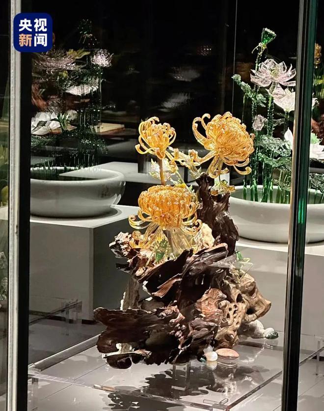 此后,孙启烨为了精进自己的琉璃技艺,在一家琉璃艺术工作室打工。后续他独立研发设计了一款琉璃菊花,这件作品在网络平台发出后,受到行业内外的一致好评,也被淄博陶瓷琉璃博物馆征集并在馆内做展出。而这件琉璃菊花也成为他受邀制作琉璃凤冠的敲门砖。