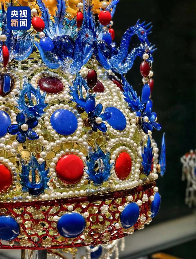 冠上的4800颗琉璃珠子也都是手工制作完成,再用电镀工艺镶嵌在上面,这个环节就耗时15天。上千颗小珠子需一颗一颗捏起来打孔,这个过程让孙启烨记忆深刻:“最小的珠子直径只有2.5毫米,捏起小珠子再打孔,真是难上加难。”