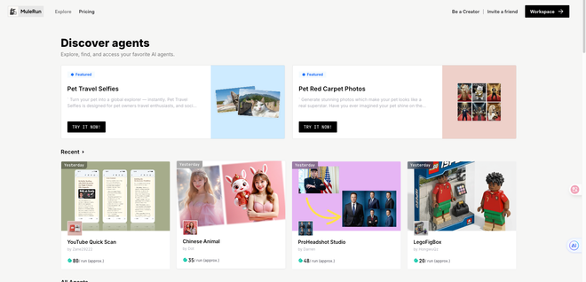 MuleRun的定位一开始就比较明确:它不是一个通用型大模型,也不打算做单一Agent工具,而是一个Agent的交易平台。